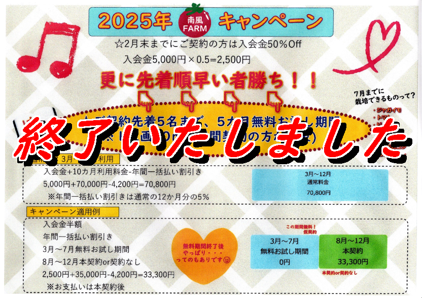 先着5名様、5カ月無料お試し期間付きプランは、ご好評につき、定員に達した為、終了とさせていただきます。